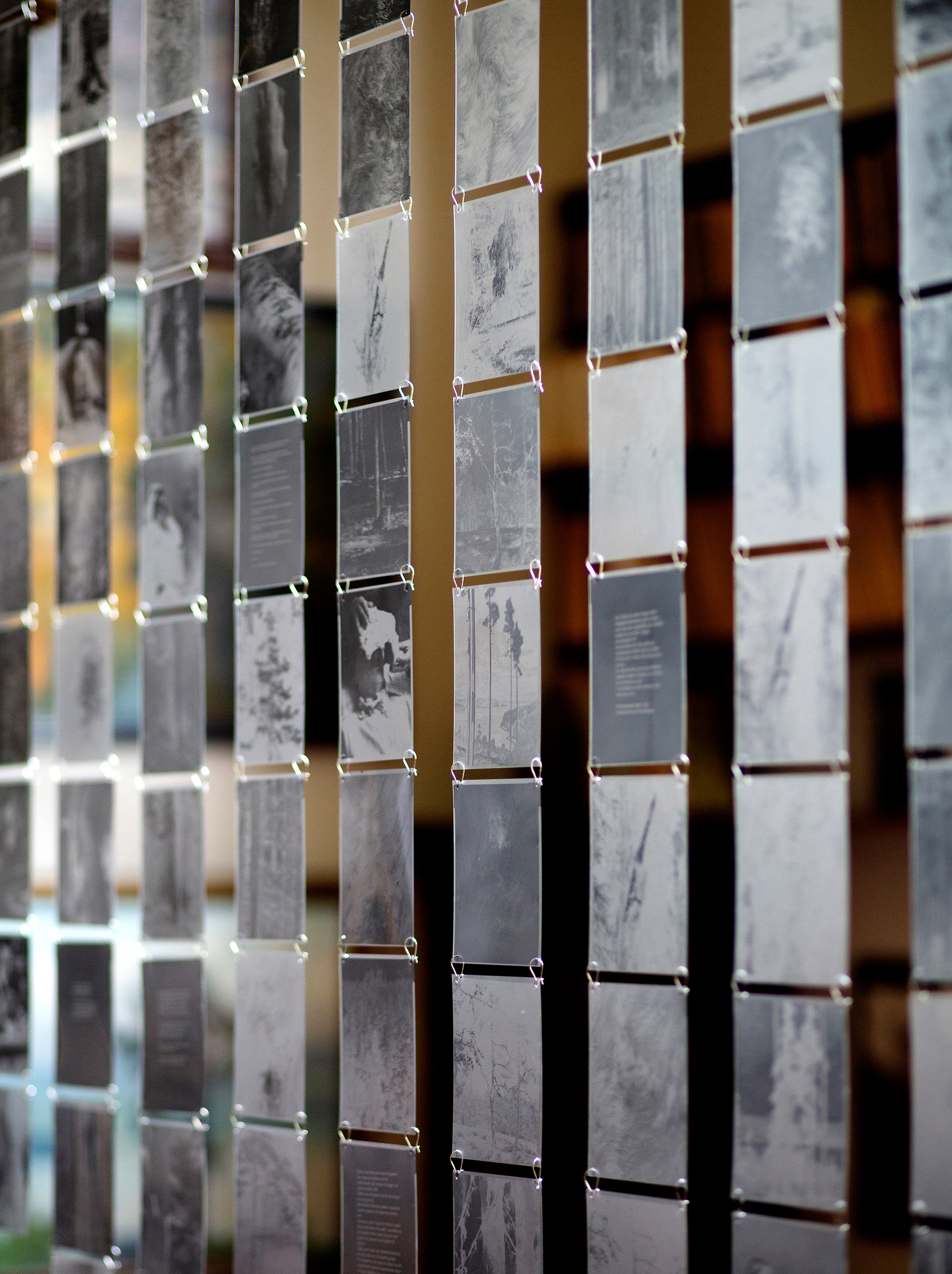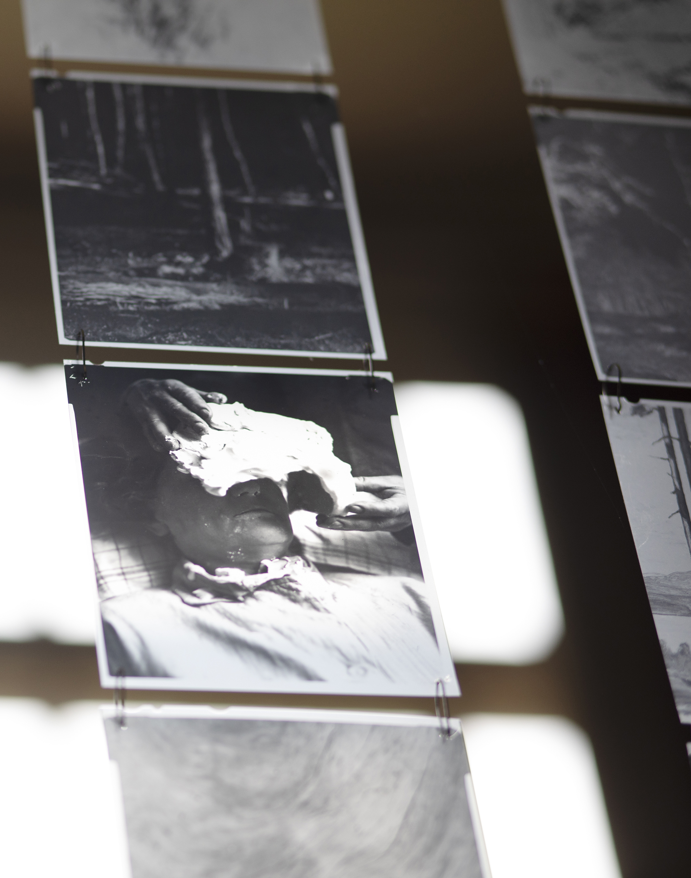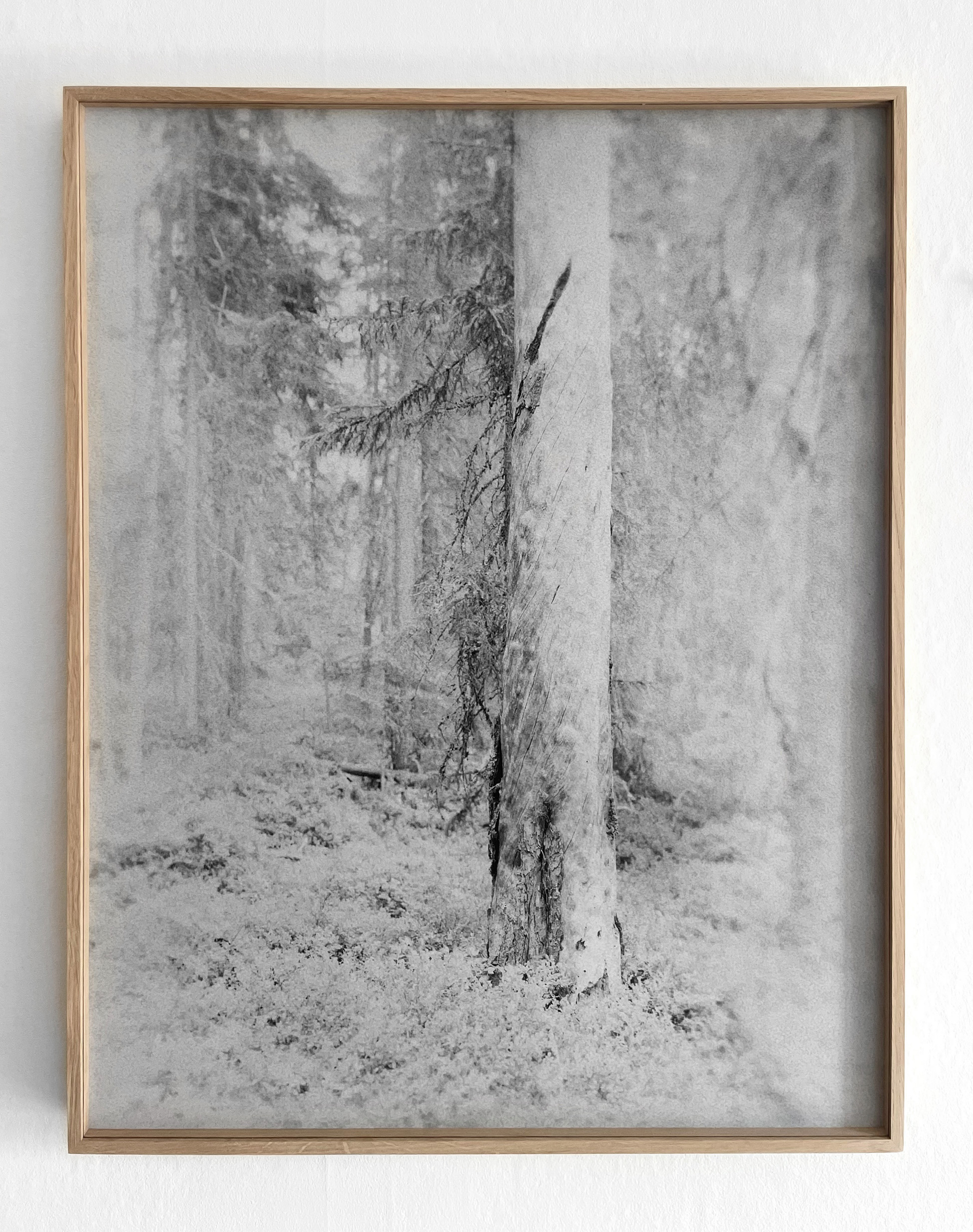 "Through rapid exposures of large-format negatives and methodical notes in moving images, with motifs from Swedish nature reserves, the artist duo Hagren/Bela make visible a series of black-and-white snapshots of the rare elements of dead wood in our forest landscapes. Creating haunting images by exposing prints in the darkroom using sparks and flames from a lighter allude to how the pine tree, by being ravaged by lightning strikes and fires, increases its resin production in such a way that it ultimately embalms itself. And from the artists photographs, filmed sequences and resin casts – where traces of something elusive are fixed – the silver pines rise as primeval forest-like tree relics; as remnants of coniferous forest with an ability to abolish the boundary between living and dead. Perhaps the portrayed trees, with such an age that their trunks shimmer silver-gray, can be seen as reminders of the transience of life? But in their state of limbo, the dead wood also constitutes a prerequisite for survival, as invaluable habitats for around half of all red-listed species in our forests.”
