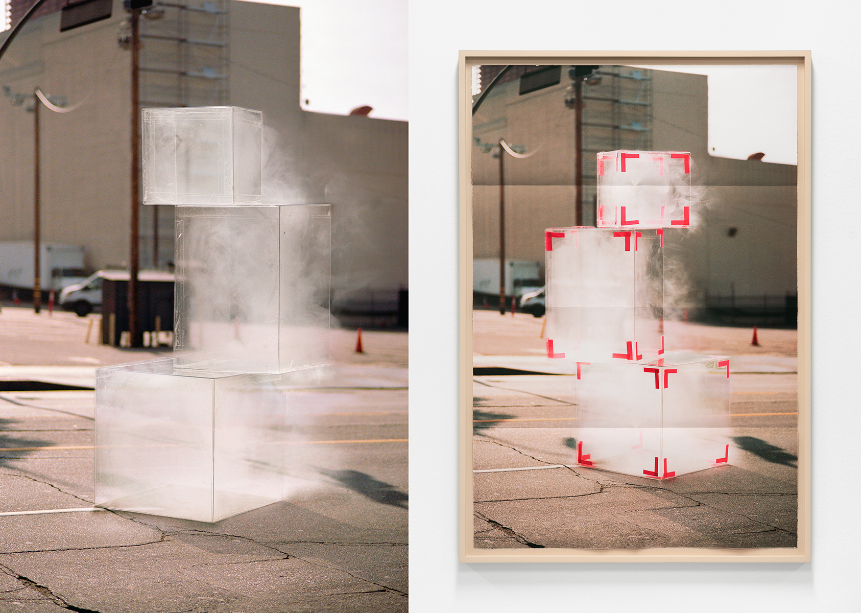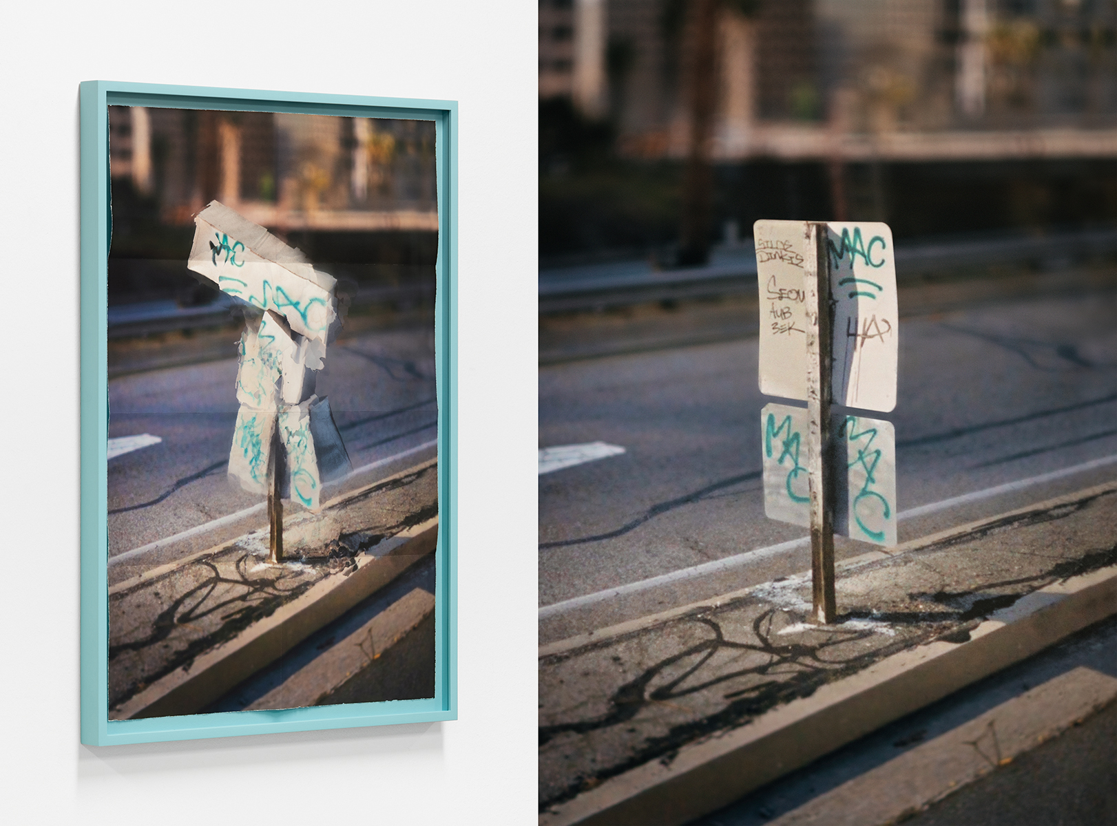 The series “Body Double” is a portrait of Los Angeles - not the actual city in California, but the abstract place which is embedded in the general consciousness through the representation in popular culture, primarily in movies. “Body Double” is a hike through the streets of the metropolis, partly based on appropriated images - from Google Street View, films, or vintage imagery - partly actually photographed on location in Los Angeles. Almost nothing here is what it appears to be at first glance - the sculptures photographed in the streets as well as in hotel rooms were never in the indicated places, the images are partly automatically deconstructed or created by software; the majority of the works were created in several steps that took place outside and inside the studio.