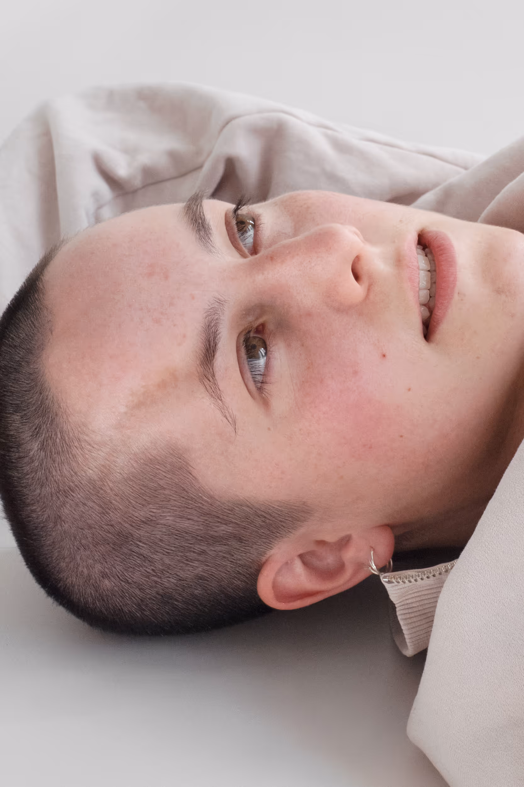 echo examines relations between self-expression, attribution, and socio-cultural codes within self-portarits. Within a studio set of three synchronized cameras, distinct lines between operator, referent, and spectator dissolve. Roland Barthes' four imaginary dimensions interlink as a reflection of the cis-heterosexual matrix and gendered markers. As a trans body, I am continually navigating internalized as well as projected politics of the gaze. echo examines the role of photography in (de-)constructing traditional identity categories to develop pluralistic views of individual and collective identity.