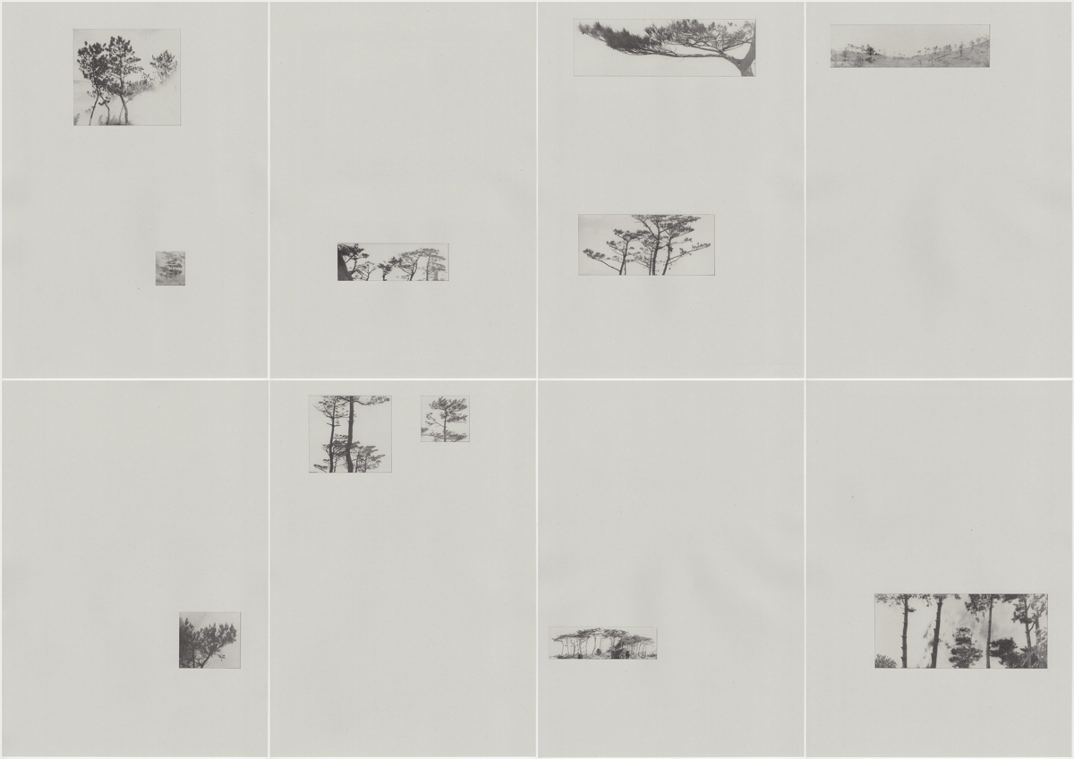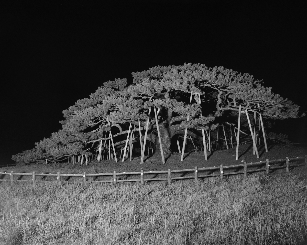 The act of naming presumes difference. The act of photographing presumes evidence. Yet when confronted with highly similar morphs, both systems of order begin to falter within their own logic. Working under fog and nightfall, using artificial light and often tightly framed compositions, he isolates these trees from their identifiable backdrop, and later re-configures them through collage and masking, to push the promise of the index to its threshold.