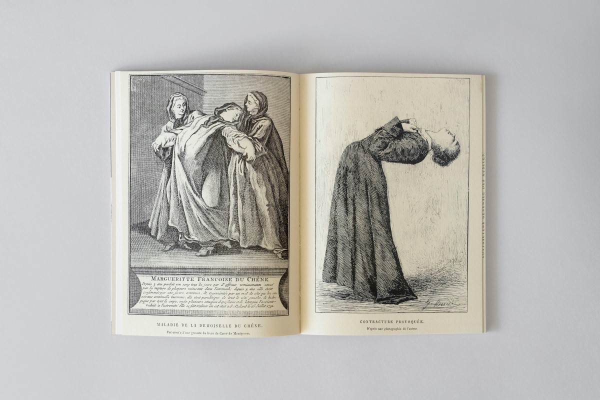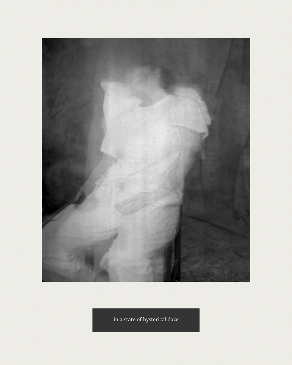 The accompanying artist’s booklet reframes archival fragments to construct a speculative archive of hysteria, situated between fact and fiction, document and performance, reality and dream. This project examines the enduring impact of institutional practices on contemporary understandings of mental health and the female body, seeking ways to reclaim histories embedded in collective female experience.