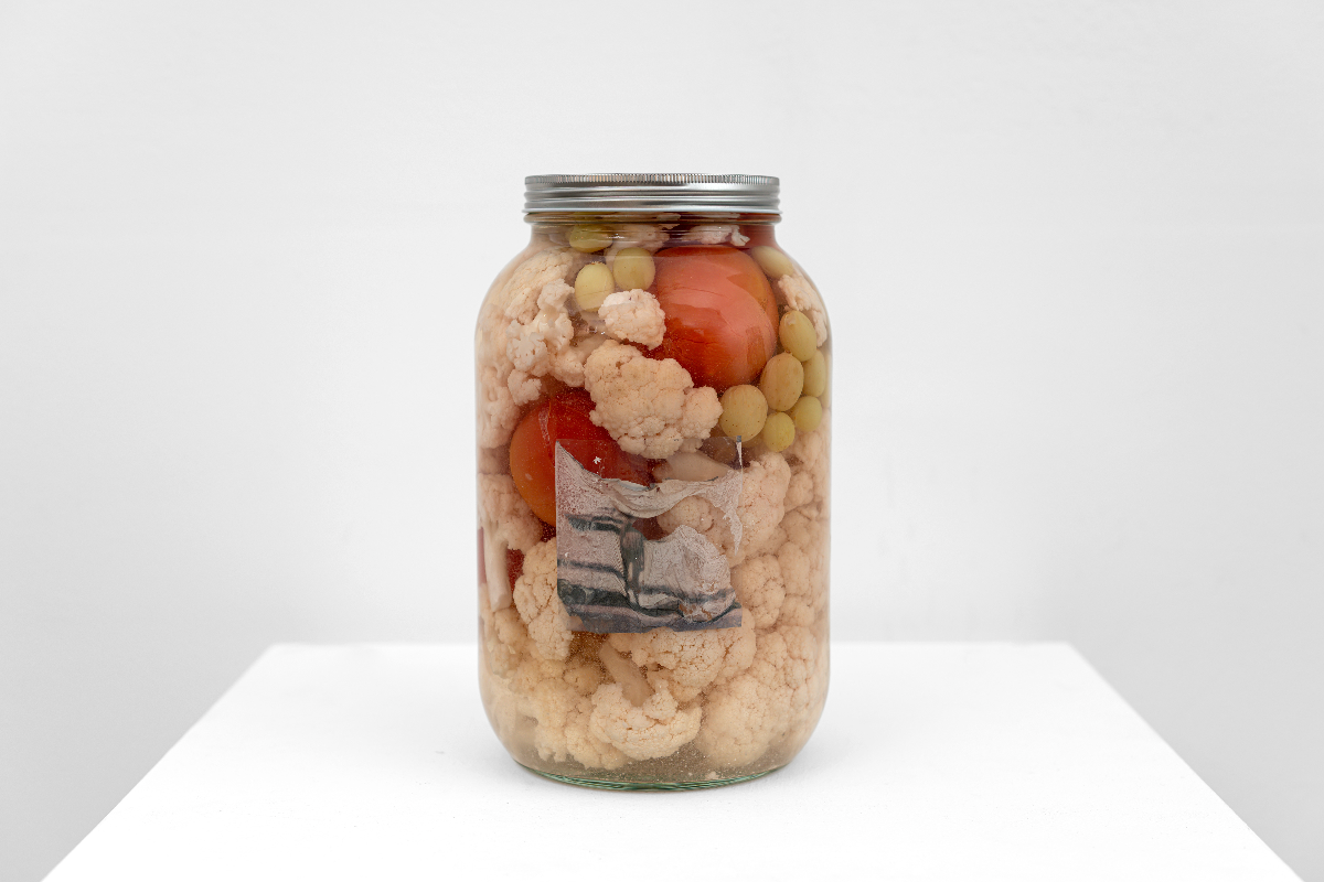 My grandmother’s root cellar was lined with shelves of jars filled with pickled fruits and vegetables - a common sight in (post)Soviet Ukraine, where scarcity made preservation a necessity. Drawing on this domestic ritual, the work reflects on the desire to preserve sustenance as well as sentiment. By sealing family photographs from holidays in Crimea and school days in Dnipro together with seasonal vegetables, the piece transforms a familiar act of preservation into a metaphor for memory itself. The jars become vessels of nostalgia and impermanence, embodying the desire to preserve and to savour what will be gone.