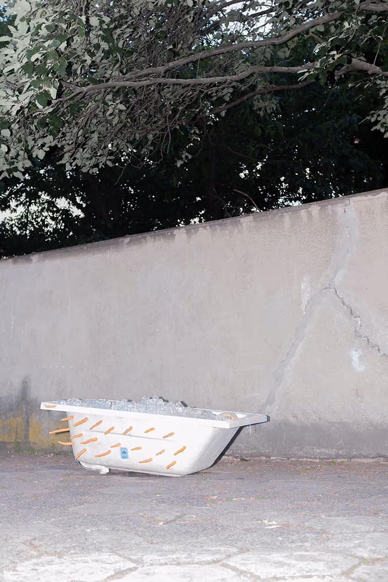 The body of work is divided into two parts. The first presents a selection of absurd and disturbing stories of detentions in Belarus. I researched these cases and created staged photographs based on them. In a dictatorial country, people are imprisoned for speaking the Belarusian language, praying, or wearing white-red-white clothing—the colors of our historical flag, now labeled as extremist.
