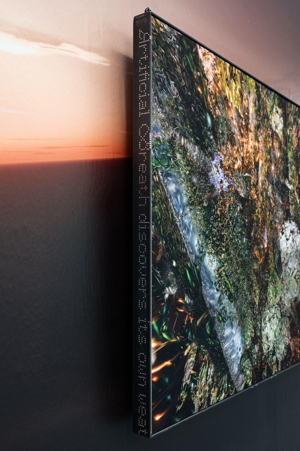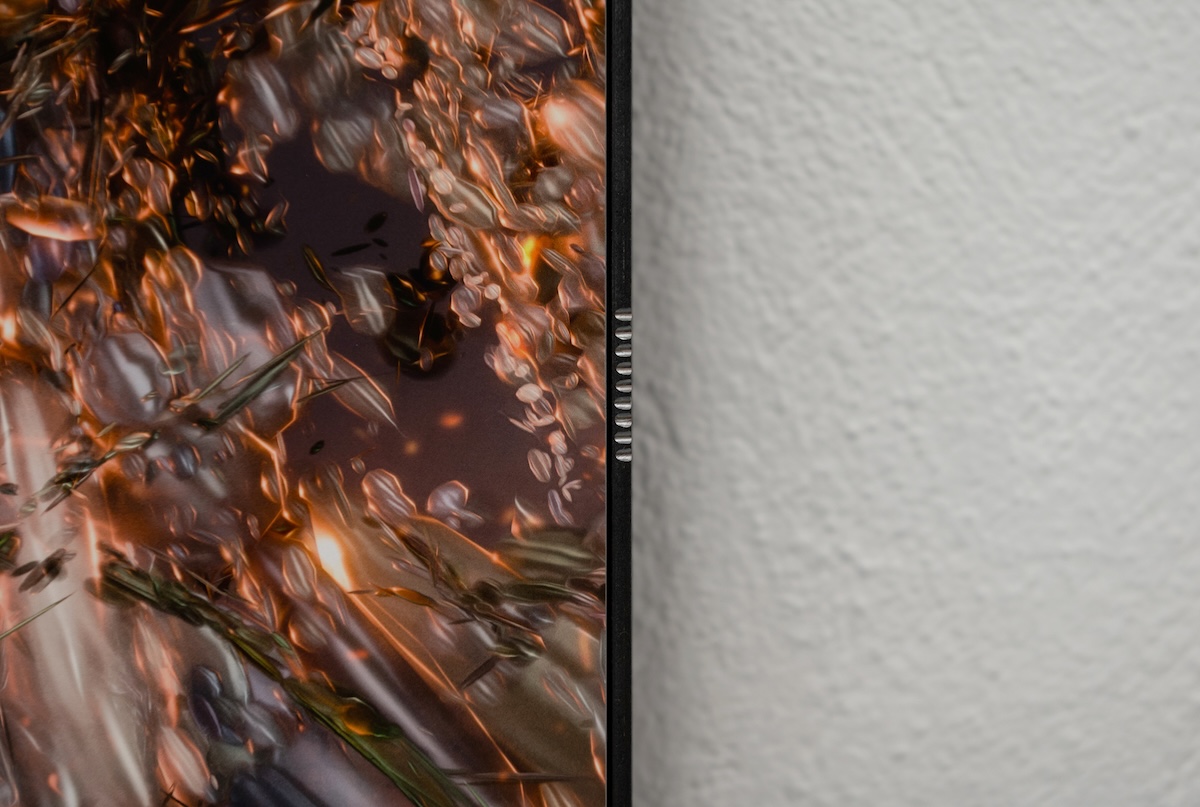 Framed in hand-engraved steel, these images come to life through poetic fragments describing a sonic transformation. The sound of this reality emerges from field recordings of mechanized greenhouse environments and sonification of the scanned data. As point clouds accumulate and plants virtually overgrow their containment, mechanical orchestrations transform: synthetic frequencies bloom from coordinate data, algorithmic rhythms dissolve into organic textures.