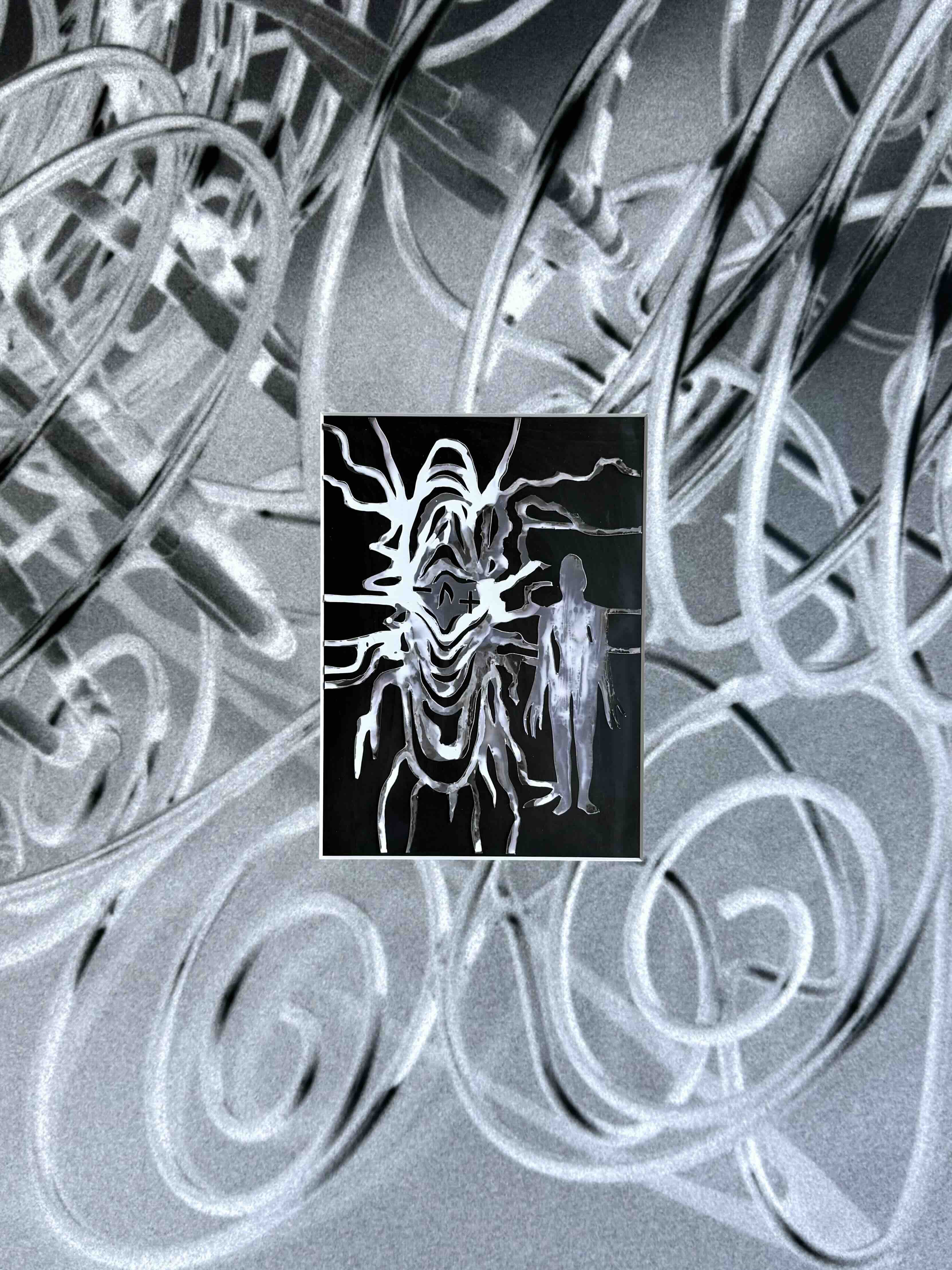 The artwork, Techno-Spectre, metaphorically refers to the digital footprints left in the virtual world. These traces range from insignificant, like saved website data, to more visible, like social media posts, which can continue to haunt our online personas long after they’re created. Our digital presence, from archived emails to online interactions, spreads across the web's vast electrical spectrum, creating a substantial ghostly presence. The ghost, a recurring motif in the author’s artistic activity, embodies the continuous practice of capturing and depicting the elusive in photography.