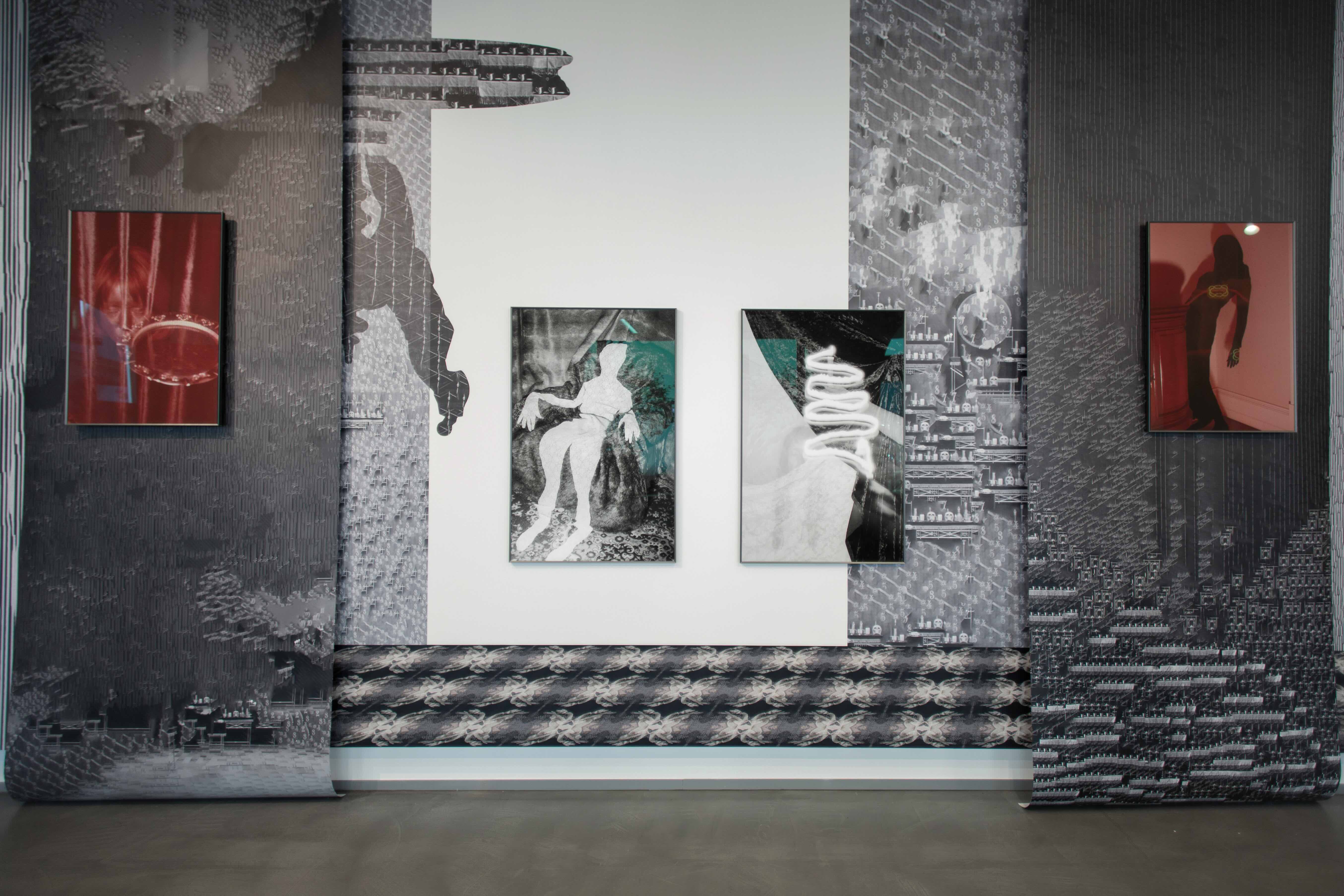 a spiritual amplifier and a technological powerhouse. Spirits were once viewed as ethereal beings linked to places or emotions, manifesting through strange phenomena. Today, the concept of ghosts has evolved from restless souls into energy-based entities that resonate with the language of technology - electromagnetic waves, data streams, electronic voice phenomena (EVP), artificial intelligence algorithms and other contemporary media. The quartz crystal becomes a symbolic bridge to such a transformation. From meditation to microchips, quartz continues to shape how we connect, whether through cosmic energy or Wi-Fi signals. During World War II, women worked in quartz factories, cutting and tuning crystals for communication devices, shaping tools that would carry voices across battlefields. Today, these same stones, polished for healing or placed on altars, embody a strange duality: sacred and scientific, personal and political. For Agate Tūna, process is essential, a curious dialogue with materiality and observations of its changes - perhaps this is why she has chosen analogue photography as her main means of expression. Using mirrors, glass, copper wire and scanning, Agate subjects her primary material (raw film) to various multimedia manipulations and interprets the photographic image into plexiglass objects and chemigrams. In addition, spatial extensions of photography enter the gallery as an autonomous affirmation. Furniture, wallpaper, electricity and corporeal symbols captured in pictures of the body are analogous entities that reflect and challenge the digital. At the same time, it is a play with the home as a conceptual place of domesticity and creation, an allegorical electromagnetic field that affects the human (artist’s) body, mind and spirit in everyday life.