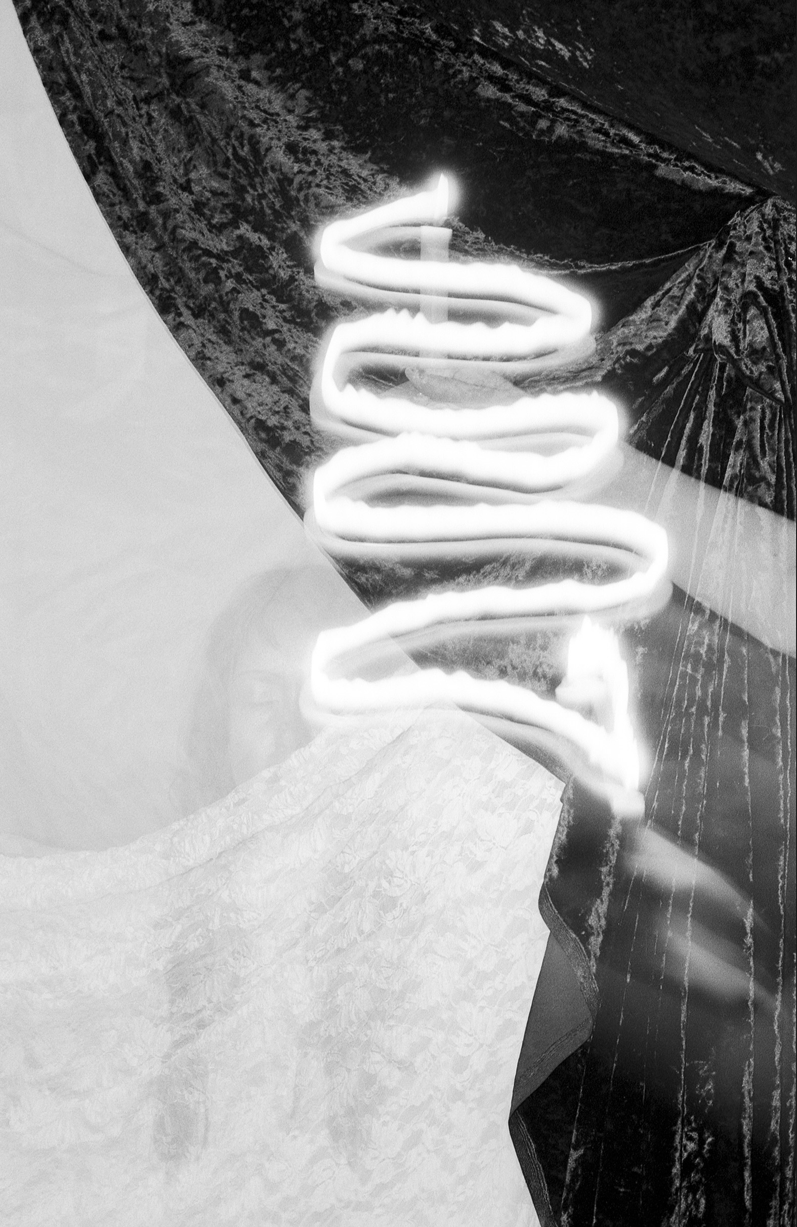 Agate Tūna follows the threads of spiritualism and illusionism photography in Latvia, continuing to challenge the boundaries of conventional photography and the relationship with reality. Already in the middle of the 19th century, the then new medium of photography became a natural ally not only for memento mori practices, but also in the mode of summoning spirits. Mysterious props and tricks - such as the